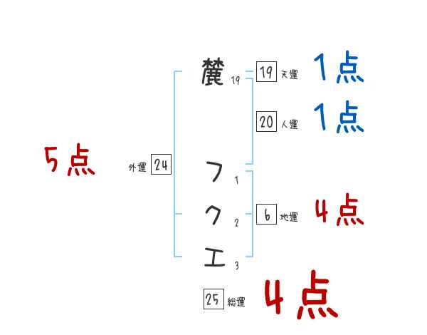 外運![]() | 麓フクエさんの外運は24画の5つ星!家庭運が良く順調な人生。金運にも恵まれる。 生活面を象徴する運勢です。外部から受ける影響力を表し、結婚運、家庭運や職場、環境への順応性を表します。 |