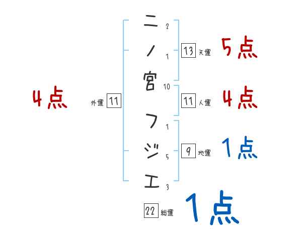 二ノ宮フジエさんの画数の鑑定結果