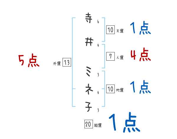 寺井ミネ子さんの画数の鑑定結果