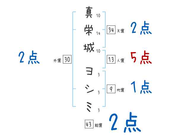 真栄城ヨシミさんの画数の鑑定結果