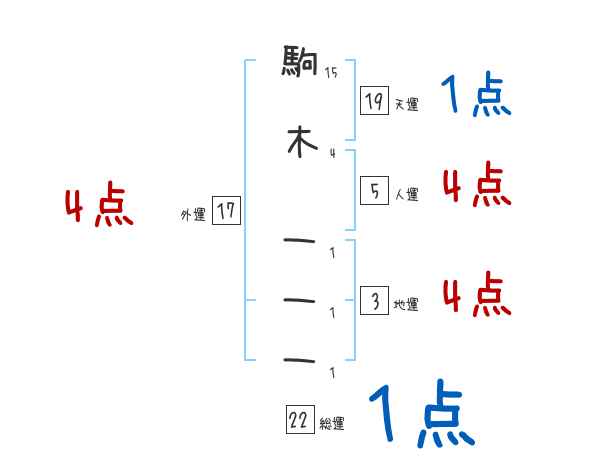 駒木一一一さんの画数の鑑定結果