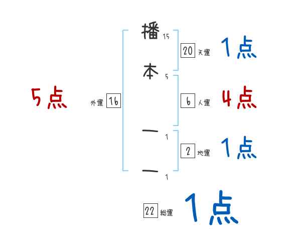 天運![]() | 播本一一さんの天運は20画の1つ星!社交が苦手。人とは違った才能があり波乱万丈な人生かも。 家系が持つ宿命的な運勢を表します。祖先から受け継いだ苗字ですので自分の力が及びません。家柄を象徴します。 |