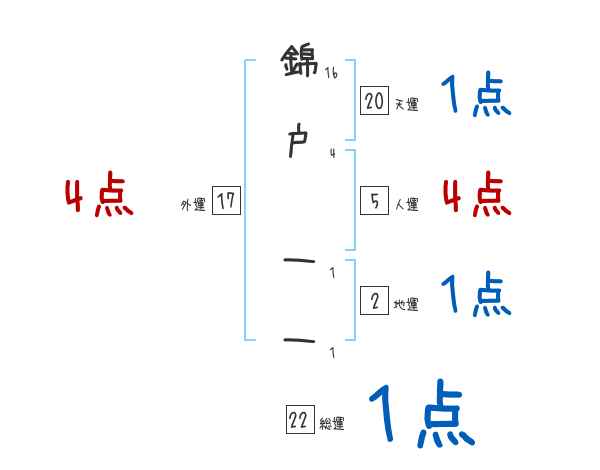 総運![]() | 錦戸一一さんの総運は22画の1つ星!努力することが苦手ないっぽう手先が器用。芸術性にも優れる。 あなたの人生を表す1番重要な運勢です。生涯を通じて影響する総合運となり、主に50歳以降の晩年期に影響を及ぼします。 |