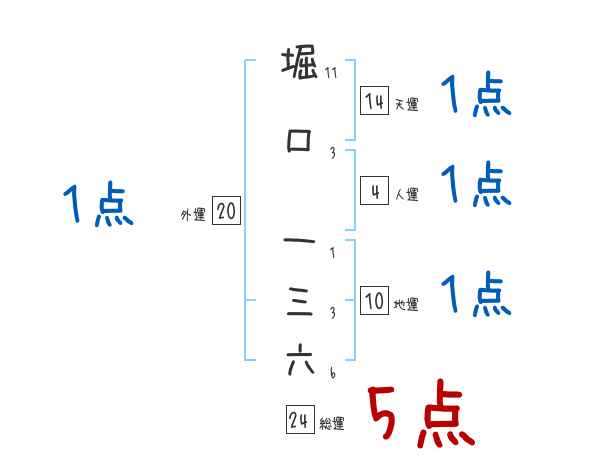 堀口一三六さんの画数の鑑定結果