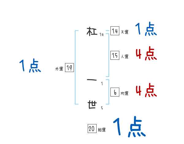 天運![]() | 杠一世さんの天運は14画の1つ星!人に対して優しいがストレスを溜め込みがち。人間関係のトラブルを避けるよう気をつけましょう。 家系が持つ宿命的な運勢を表します。祖先から受け継いだ苗字ですので自分の力が及びません。家柄を象徴します。 |