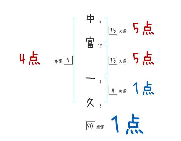 中富一久さんの画数の鑑定結果