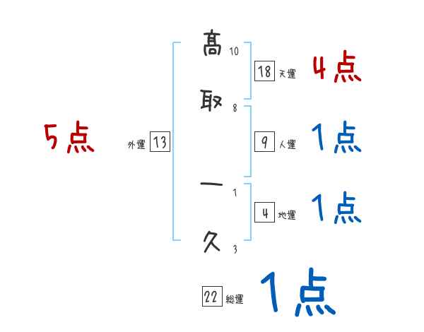 髙取一久さんの画数の鑑定結果