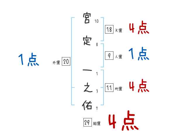 家系が持つ宿命的な運勢を表します。祖先から受け継いだ苗字ですので自分の力が及びません。家柄を象徴します。