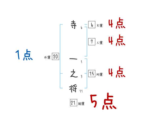 人運![]() | 寺一之将さんの人運は7画の4つ星!強い意志や信念を持ち独立心が強い。自立する。 性格や才能などを表す2番目に重要な運勢です。人間関係や協調性、社会的な成功に影響します。主に20歳から50歳ぐらいまでの中年期の運勢を表します。 |