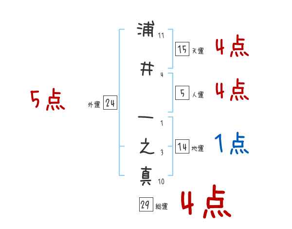 外運![]() | 浦井一之真さんの外運は24画の5つ星!家庭運が良く順調な人生。金運にも恵まれる。 生活面を象徴する運勢です。外部から受ける影響力を表し、結婚運、家庭運や職場、環境への順応性を表します。 |