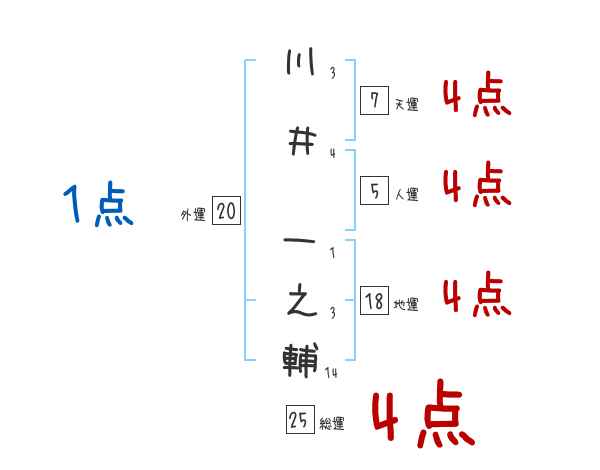 川井一之輔さんの画数の鑑定結果