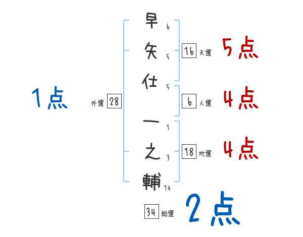 早矢仕一之輔さんの画数の鑑定結果