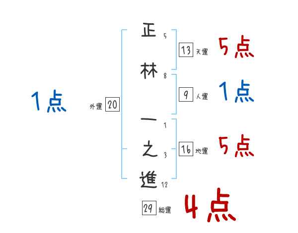 外運![]() | 正林一之進さんの外運は20画の1つ星!社交が苦手。人とは違った才能があり波乱万丈な人生かも。 生活面を象徴する運勢です。外部から受ける影響力を表し、結婚運、家庭運や職場、環境への順応性を表します。 |