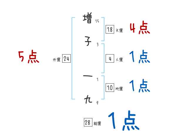 外運![]() | 増子一九さんの外運は24画の5つ星!家庭運が良く順調な人生。金運にも恵まれる。 生活面を象徴する運勢です。外部から受ける影響力を表し、結婚運、家庭運や職場、環境への順応性を表します。 |