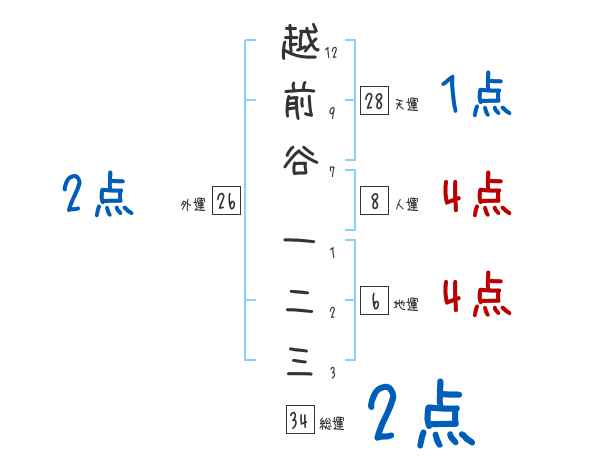 越前谷一二三さんの画数の鑑定結果