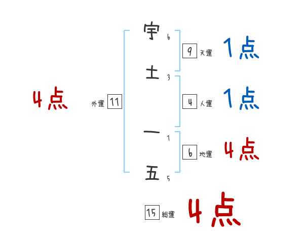 宇土一五さんの画数の鑑定結果