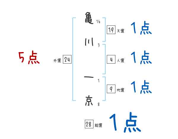 総運![]() | 亀川一京さんの総運は28画の1つ星!家庭環境に注意。スポーツで活躍できる能力があるかも。 あなたの人生を表す1番重要な運勢です。生涯を通じて影響する総合運となり、主に50歳以降の晩年期に影響を及ぼします。 |