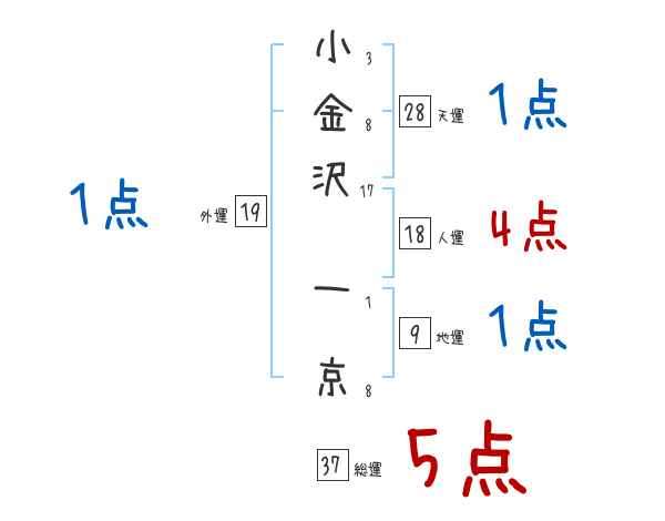 小金沢一京さんの画数の鑑定結果