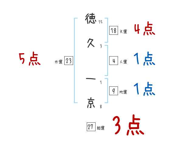 徳久一京さんの画数の鑑定結果