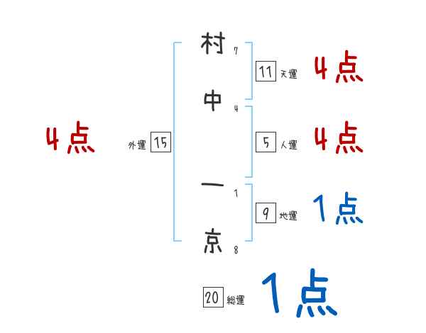 天運![]() | 村中一京さんの天運は11画の4つ星!着実に富や地位を得る幸運な人生。 家系が持つ宿命的な運勢を表します。祖先から受け継いだ苗字ですので自分の力が及びません。家柄を象徴します。 |