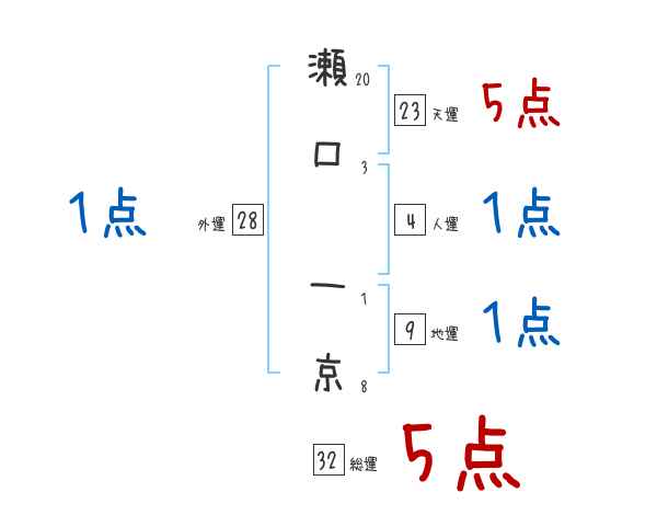 総運![]() | 瀬口一京さんの総運は32画の5つ星!柔軟性があり成功する。チャンスが多く金運が良い。 あなたの人生を表す1番重要な運勢です。生涯を通じて影響する総合運となり、主に50歳以降の晩年期に影響を及ぼします。 |