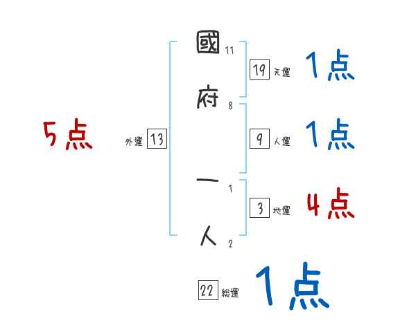 國府一人さんの画数の鑑定結果
