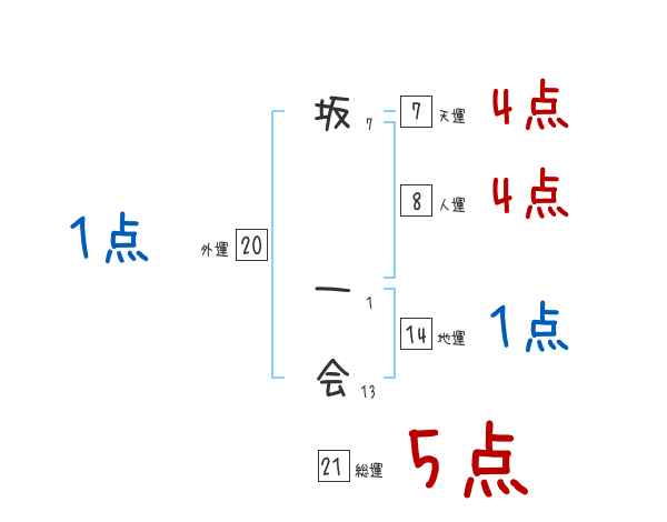 坂一会さんの画数の鑑定結果