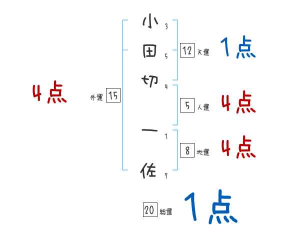 地運![]() | 小田切一佐さんの地運は8画の4つ星!勤勉家。根気強く努力し成功する。忍耐力がある。 個性を表す基礎的な運勢です。性格形成や対人関係、行動力など家庭環境に影響されます。主に誕生してから20歳くらいまでの若年期の運勢を表します。 |