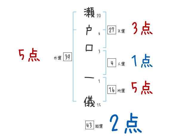 瀬戸口一儀さんの画数の鑑定結果