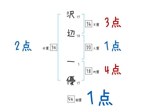 沢辺一優さんの画数の鑑定結果