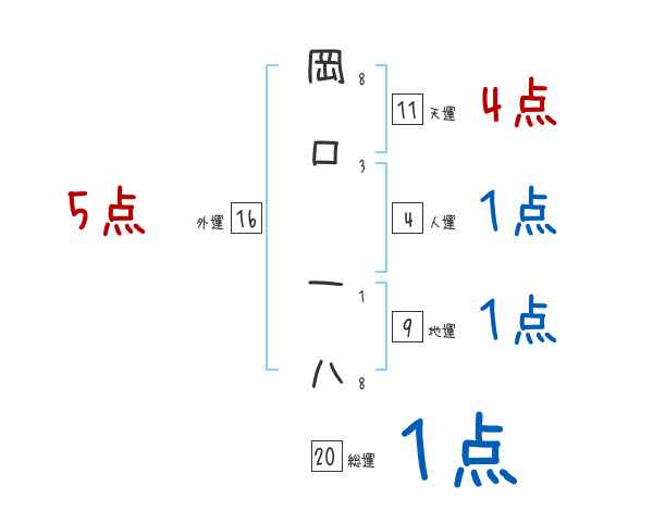 外運![]() | 岡口一八さんの外運は16画の5つ星!人望が厚く大きく発展する。逆転成功が見える。 生活面を象徴する運勢です。外部から受ける影響力を表し、結婚運、家庭運や職場、環境への順応性を表します。 |