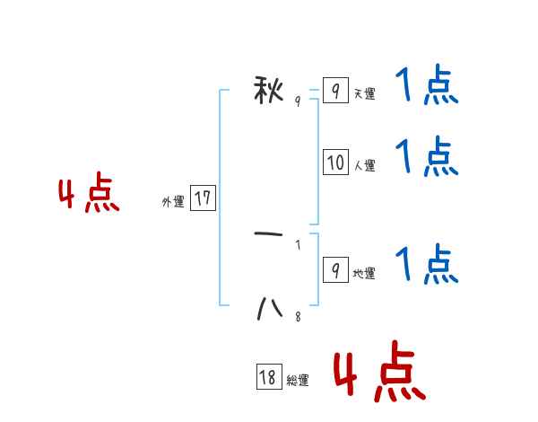 秋一八さんの画数の鑑定結果
