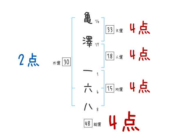 亀澤一六八さんの画数の鑑定結果