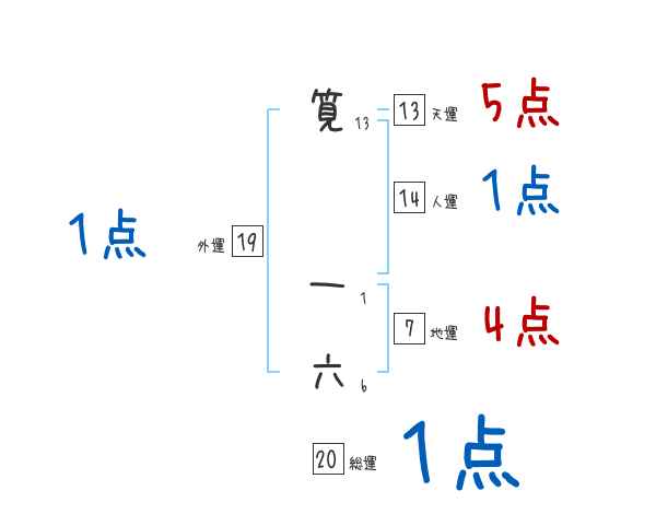 筧一六さんの画数の鑑定結果