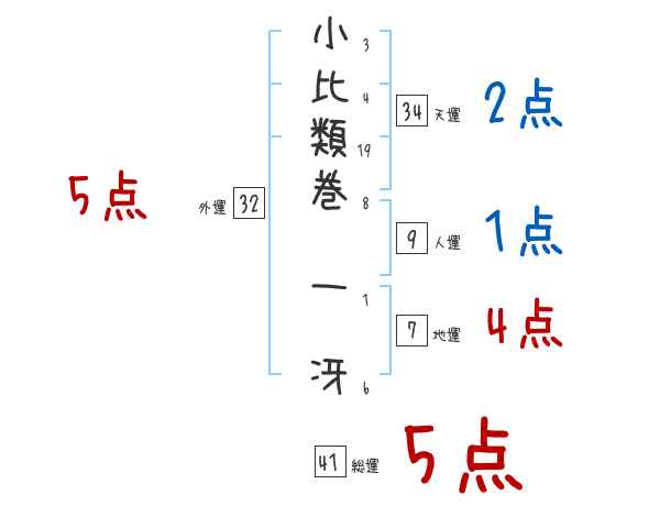 外運![]() | 小比類巻一冴さんの外運は32画の5つ星!柔軟性があり成功する。チャンスが多く金運が良い。 生活面を象徴する運勢です。外部から受ける影響力を表し、結婚運、家庭運や職場、環境への順応性を表します。 |