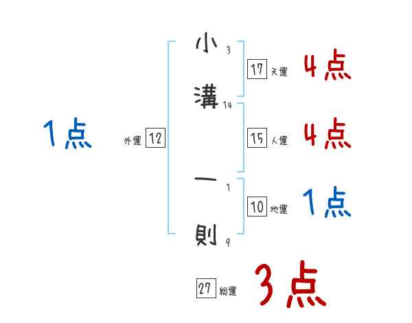 総運![]() | 小溝一則さんの総運は27画の3つ星!頭脳明晰だが強情で摩擦が多い傾向。孤立に注意。 あなたの人生を表す1番重要な運勢です。生涯を通じて影響する総合運となり、主に50歳以降の晩年期に影響を及ぼします。 |