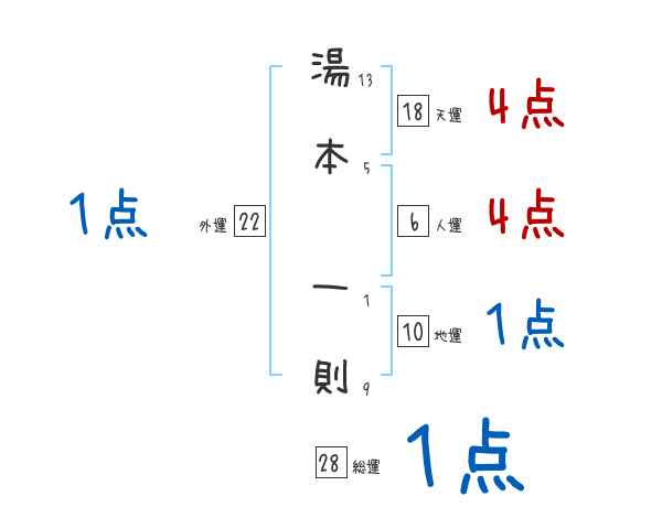 湯本一則さんの画数の鑑定結果