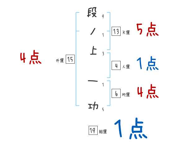 外運![]() | 段ノ上一功さんの外運は15画の4つ星!人徳があり出世する。順調に物事を進め円満な人生。 生活面を象徴する運勢です。外部から受ける影響力を表し、結婚運、家庭運や職場、環境への順応性を表します。 |