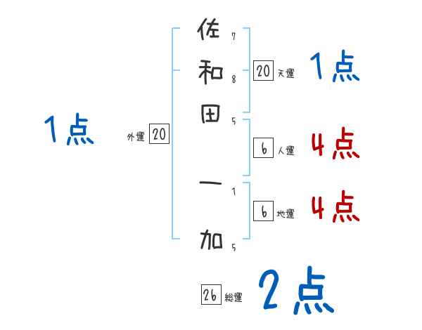 総運![]() | 佐和田一加さんの総運は26画の2つ星!波瀾万丈かも。信頼できる人を大事にしましょう。 あなたの人生を表す1番重要な運勢です。生涯を通じて影響する総合運となり、主に50歳以降の晩年期に影響を及ぼします。 |