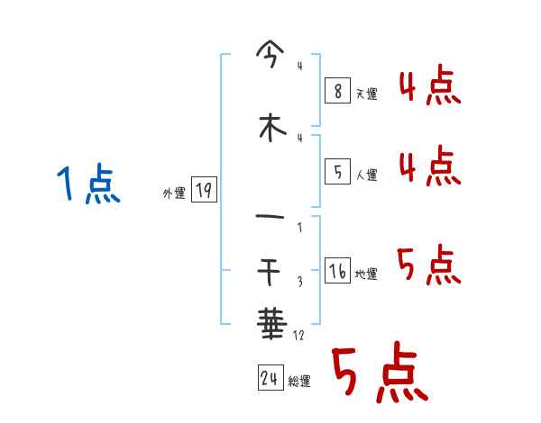 外運![]() | 今木一千華さんの外運は19画の1つ星!優れた才能を持ちますが、協調性が足りないことも。周りの人と協力する事を意識しましょう。 生活面を象徴する運勢です。外部から受ける影響力を表し、結婚運、家庭運や職場、環境への順応性を表します。 |