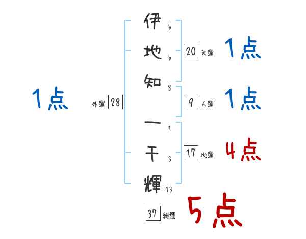 伊地知一千輝さんの画数の鑑定結果