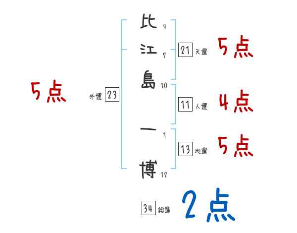 天運![]() | 比江島一博さんの天運は21画の5つ星!統率力がある。独立し成功する。名誉を手に入れる。 家系が持つ宿命的な運勢を表します。祖先から受け継いだ苗字ですので自分の力が及びません。家柄を象徴します。 |