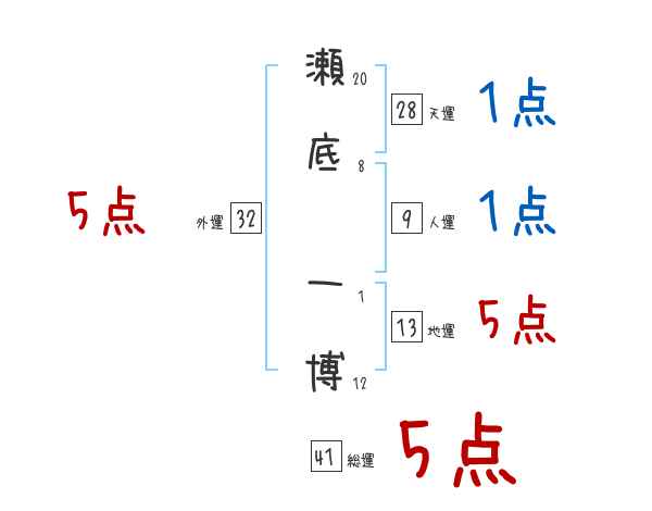 瀬底一博さんの画数の鑑定結果