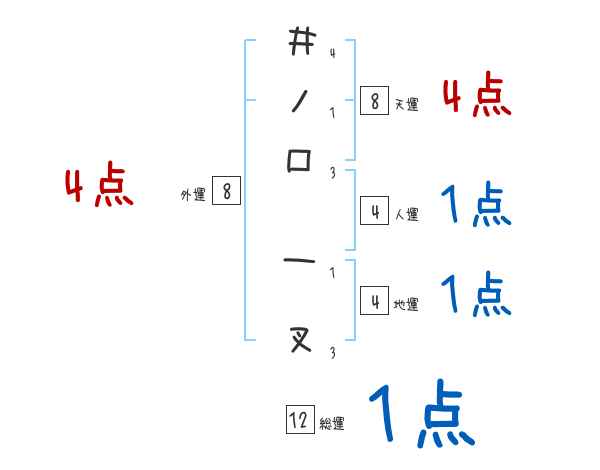 地運![]() | 井ノ口一叉さんの地運は4画の1つ星!感情が不安定で苦労するかも。周囲との協調を心掛けましょう。 個性を表す基礎的な運勢です。性格形成や対人関係、行動力など家庭環境に影響されます。主に誕生してから20歳くらいまでの若年期の運勢を表します。 |