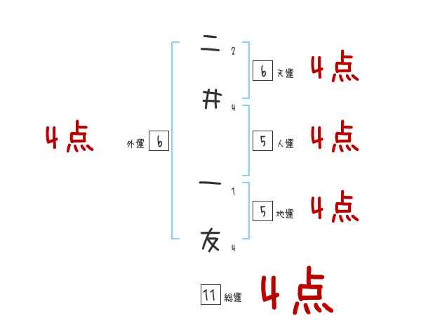二井一友さんの画数の鑑定結果