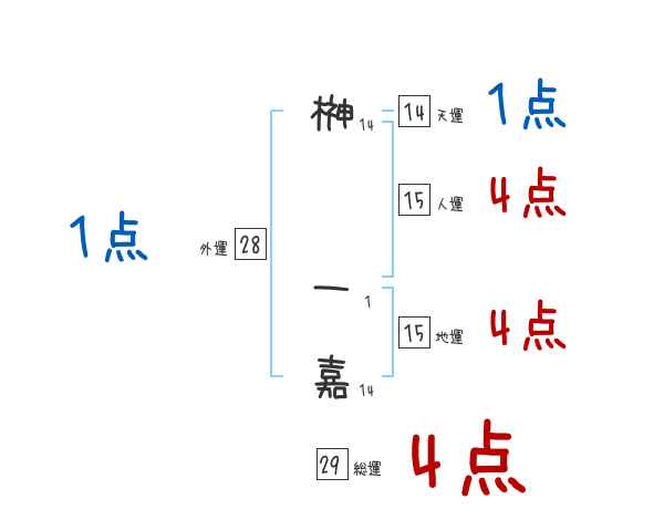 榊一嘉さんの画数の鑑定結果