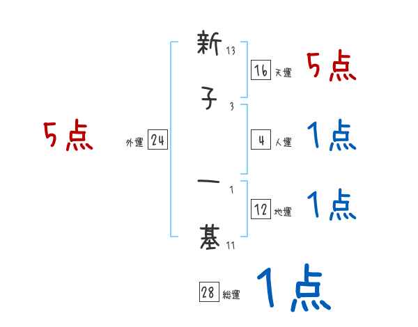 新子一基さんの画数の鑑定結果