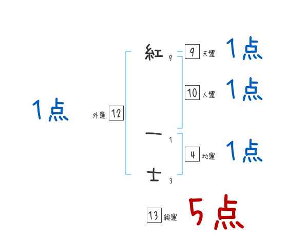 紅一士さんの画数の鑑定結果