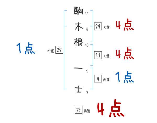 駒木根一士さんの画数の鑑定結果