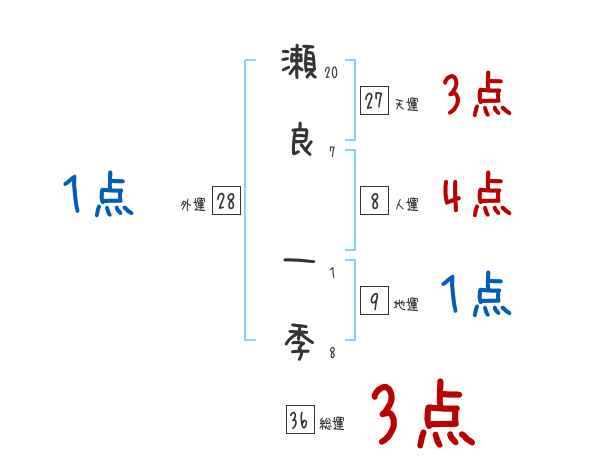 瀬良一季さんの画数の鑑定結果